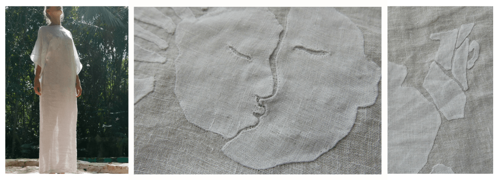 LOS AMANTES kaftan | 100% linen muslin | Zero-waste kaftan with hand-stitched appliqué.